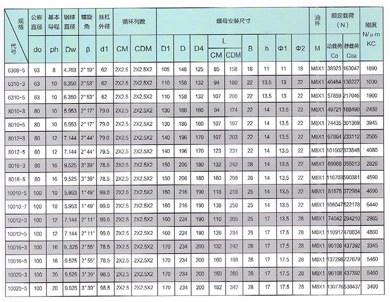 鋼球滾動接觸外均經硬化(HRC58-62)處理,并經精密磨削,循環體系過程純屬滾動,相對對磨損甚微,故具有較高的使用壽命和精度保持性。
